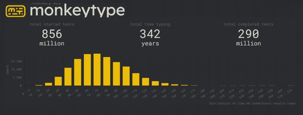 Einer meiner Freunde hat mich auf die Website namens „Monkeytype“aufmerksam gemacht und ich war einfach fasziniert davon, höhere Punktzahlen zu erzielen.