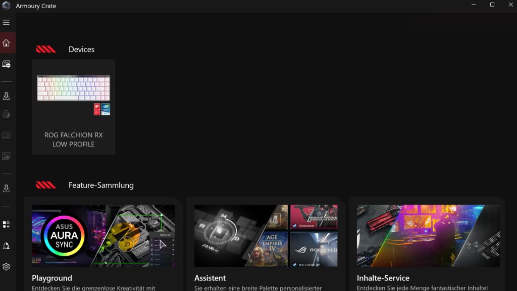 Dennoch bleibt ASUS aggressiv in seiner Software: ständig werde ich dazu aufgefordert, mich doch bitte einzuloggen oder tolle neue Features (irgendwelche Wallpaper) zu installieren. Obendrein belegt Armoury Crate bei mir zwischen 350 und 400 Megabyte im Arbeitsspeicher. Für eine Software, die ich nur für die Tastatur benutzen möchte, ist das sehr viel. Damit liegt man beim Ressourcenhunger irgendwo zwischen Synapse (Razer) und iCue (Corsair).