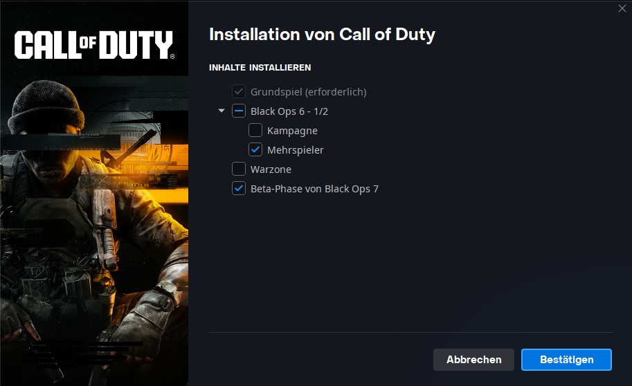 - Auf Battle.net: Auf das Rädchen neben „Spielen“ klicken, Eigenschaften auswählen, Installation modifizieren und den Haken bei „Beta-Phase von Black Ops 7“ machen, Spiel updaten.