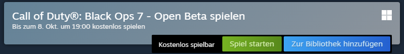 - Auf Steam: „Call of Duty“ im Steam-Shop oder „Black Ops 7“ im Steam-Shop aufrufen, auf „Spiel starten“ oder „zur Bibliothek hinzufügen“ klicken.