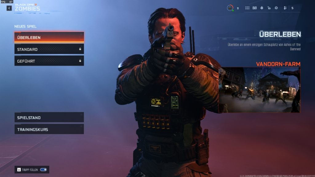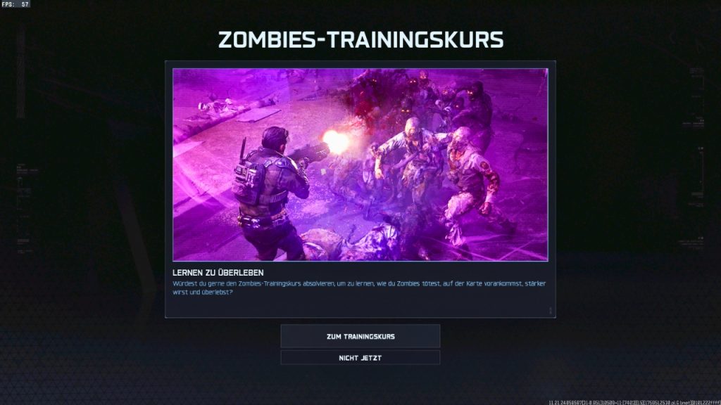 Wenn ihr den Zombie-Modus startet, werdet ihr zunächst gefragt, ob ihr einen Trainingskurs durchführen wollt. In der Lobby habt ihr außerdem die Möglichkeit, den „Überleben“-Modus zu zocken, bei dem ihr an einem Schauplatz überleben müsst.