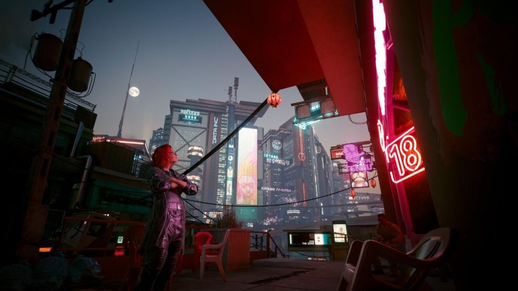 Die Songs im Radio (die tatsächlich absolute Banger sind), die voll eingerichteten Küchen eines Imbisses, ein unscheinbares Bewässerungssystem für die restlichen paar Bäumchen: Solche Dinge zeigen, dass sich jemand um die Stadt kümmert, dass normale Menschen zur Arbeit gehen, dass es Kultur gibt und Night City lebt. Und von diesen Dingen findet man reichlich. Mit einem offenen Auge durch die Stadt zu spazieren, lohnt sich daher sehr. Das Design erzählt eine eigene Geschichte.