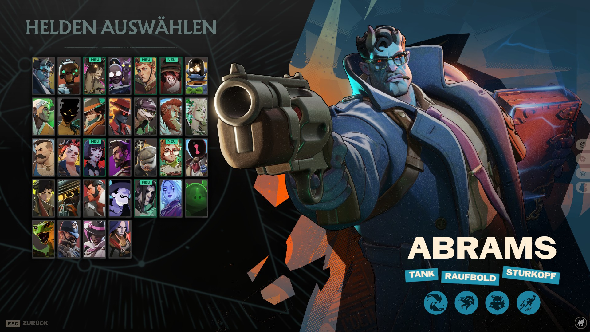 Wer ist Abrams? Der große blaue Detektiv stürmt in viele Gegner rein, egal ob mit seiner Schulter oder aus der Luft mit einem seismischen Einschlag. Durch die Lebensextraktion und einer natürlichen infernalen Resistenz überlebt er den Kampf im besten Fall länger als seine Feinde.
