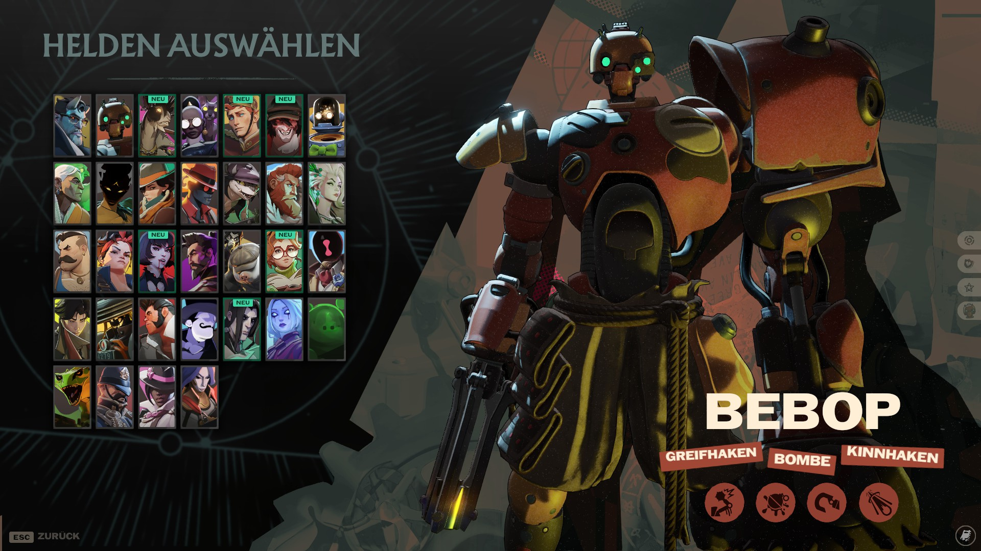- Greifarm: Wirf einen Haken aus, der den ersten Feind oder befreundeten Helden, den er trifft, packt und zu dir zieht.