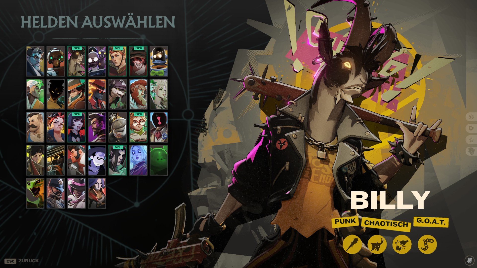 Wer ist Billy? Die Punkziege, Billy, ist ein Bilderbuchrowdy und prügelt sich am liebsten mit dem gesamten Gegnerteam. Durch seinen Ansturm und dem Baseballschläger nimmt er seine Feinde in die Mangel und zieht jeden, der flüchten möchte, mit Ketten zu sich zurück.