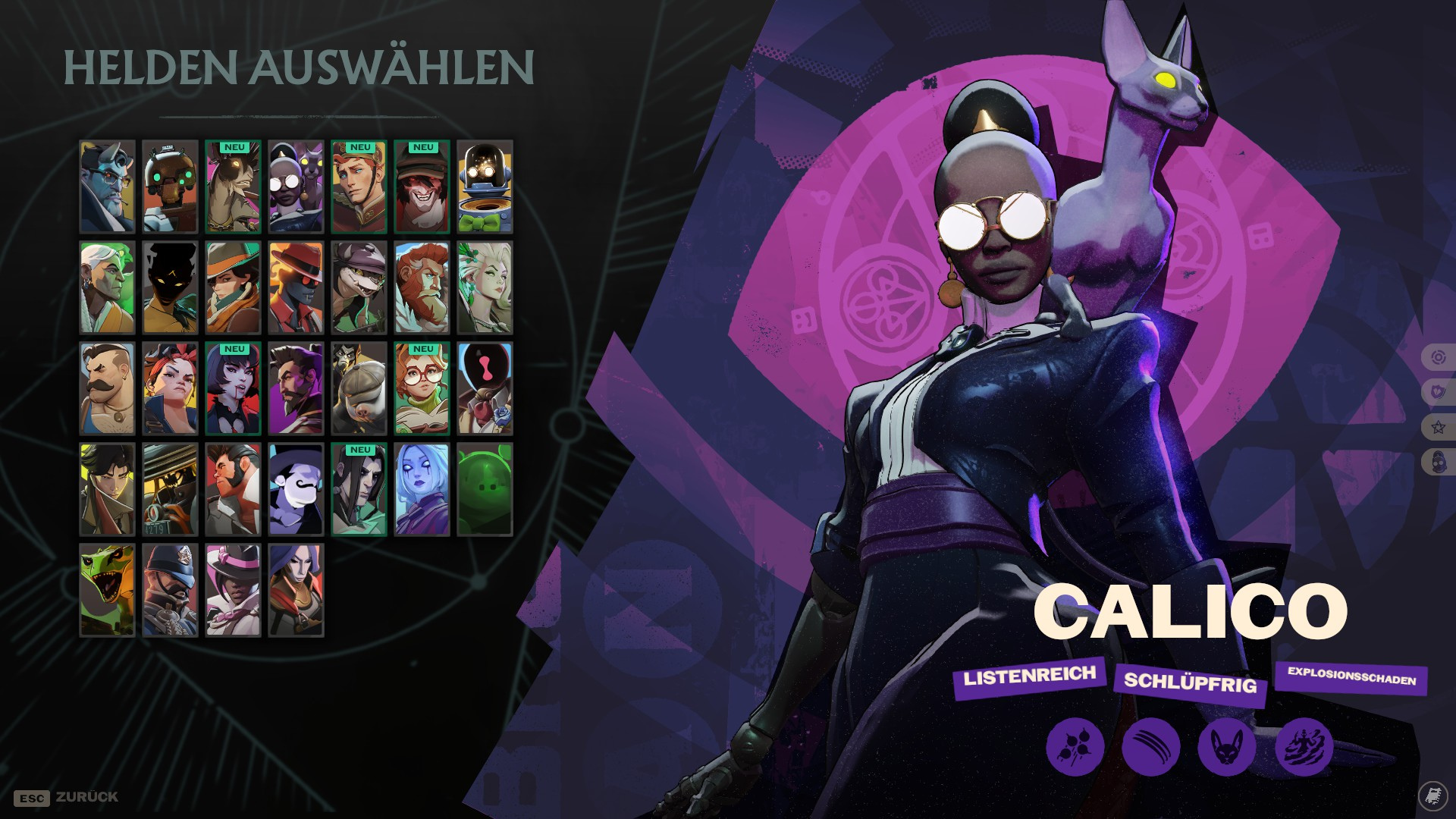 Wer ist Calico? Die freundliche Katzenfrau, Calico, bewirft ihre Feinde mit Bomben, schlitzt sich ihren Weg durch mehrere Gegner und verschwindet bei zu großer Gefahr in den Schatten. Als Katze läuft Calico mit rasanter Geschwindigkeit durch New York und lauert unaufmerksamen Gegnern auf.