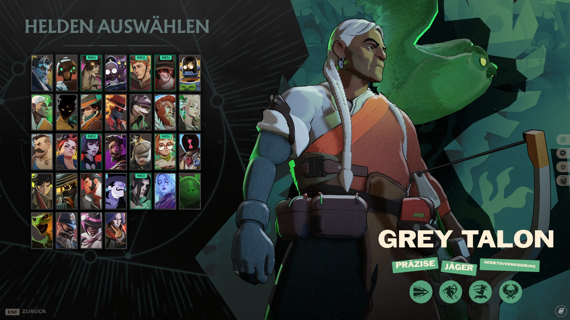 Wer ist Grey Talon? Grey Talon verschießt starke, aufgeladene Schüsse mit seinem Bogen. Im Flug schießt er mit mehreren Pfeilen gleichzeitig und hält Gegner mit seiner Falle auf Distanz. Mit der magischen Eule sucht er sich Ziele, um seine Magiekraft permanent zu erhöhen.