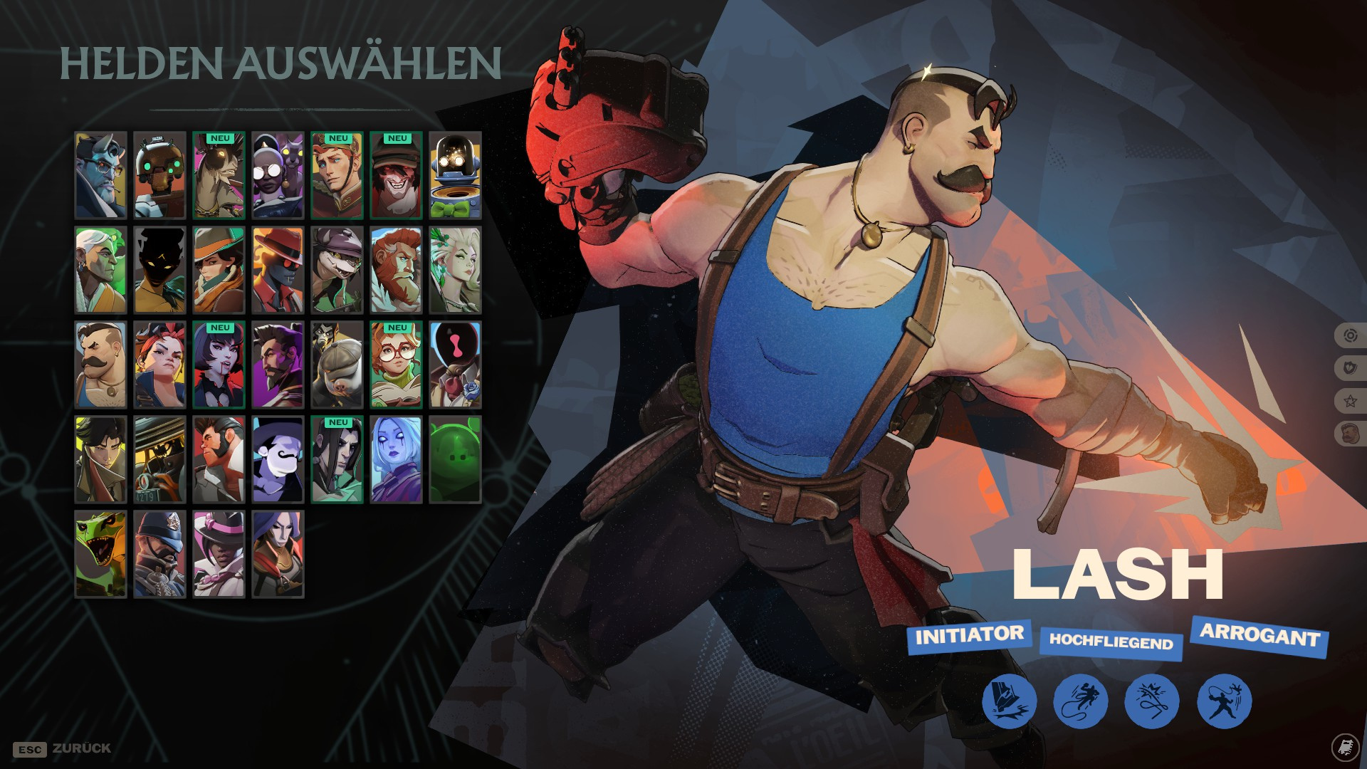 Wer ist Lash? Lash beherrscht durch den Wurfhaken die Lüfte und schnellt auf seine Feinde mit dem Bodenschlag nieder oder wirft sie mit seiner Ultimate weg. In gewagten Situationen kann er sich mit einem Peitschenhieb heilen.