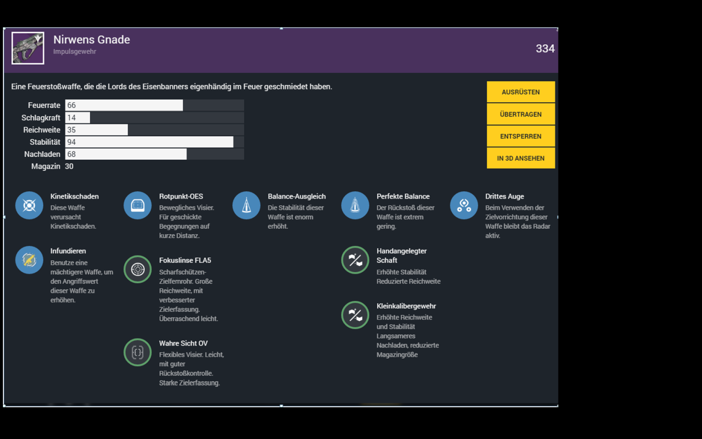 Die Waffe macht dabei im PvP und PvE gleichermaßen eine gute Figur und hat mit knapp 0,73 Sekunden einen der besten “Time to Kill”-Werte des Spiels.