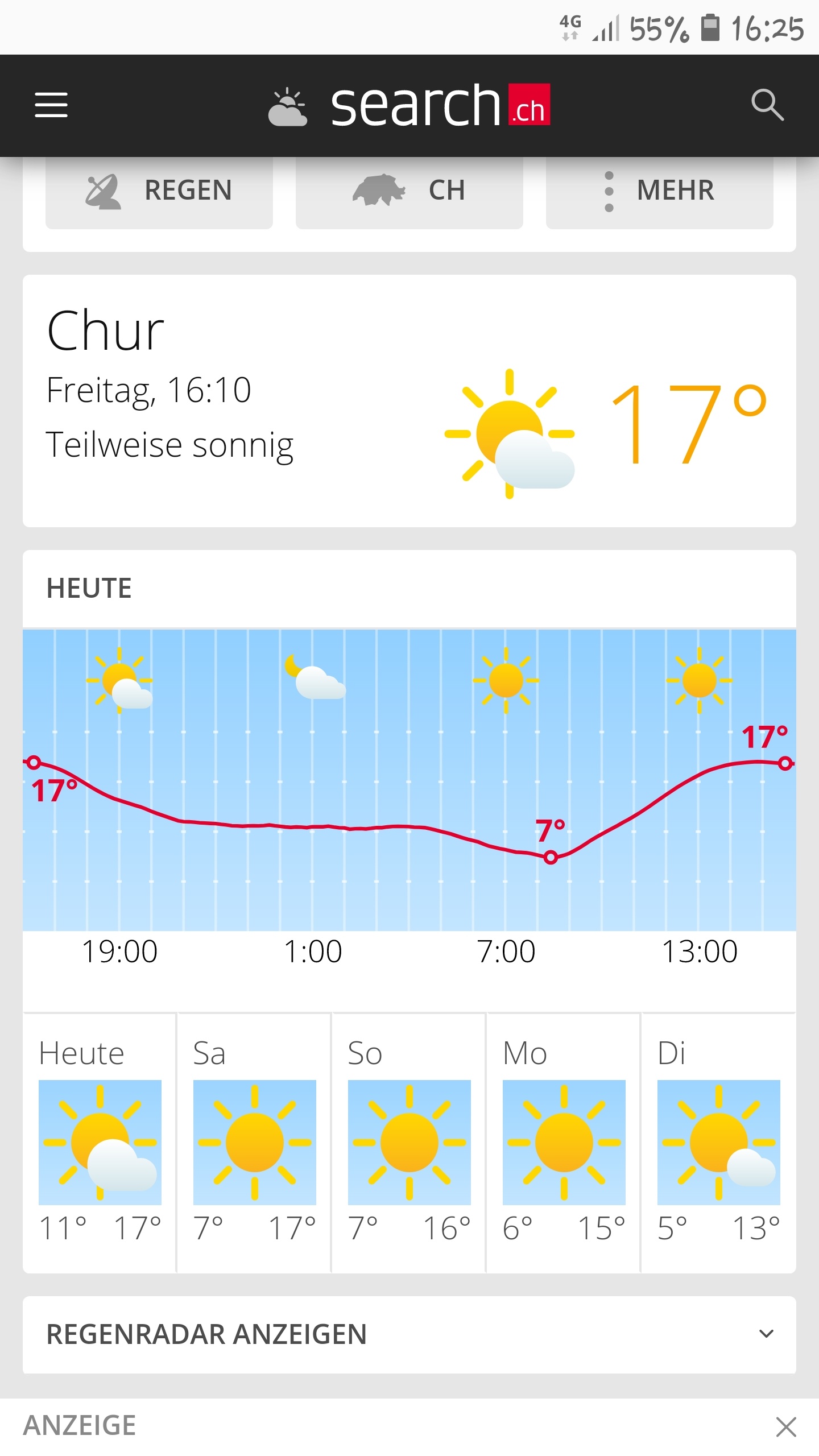 Schweiz Chur…in der Sonne ist schon recht heiss. Gut wir sind hier auch ein wenig höher über dem Meeresspiegel.