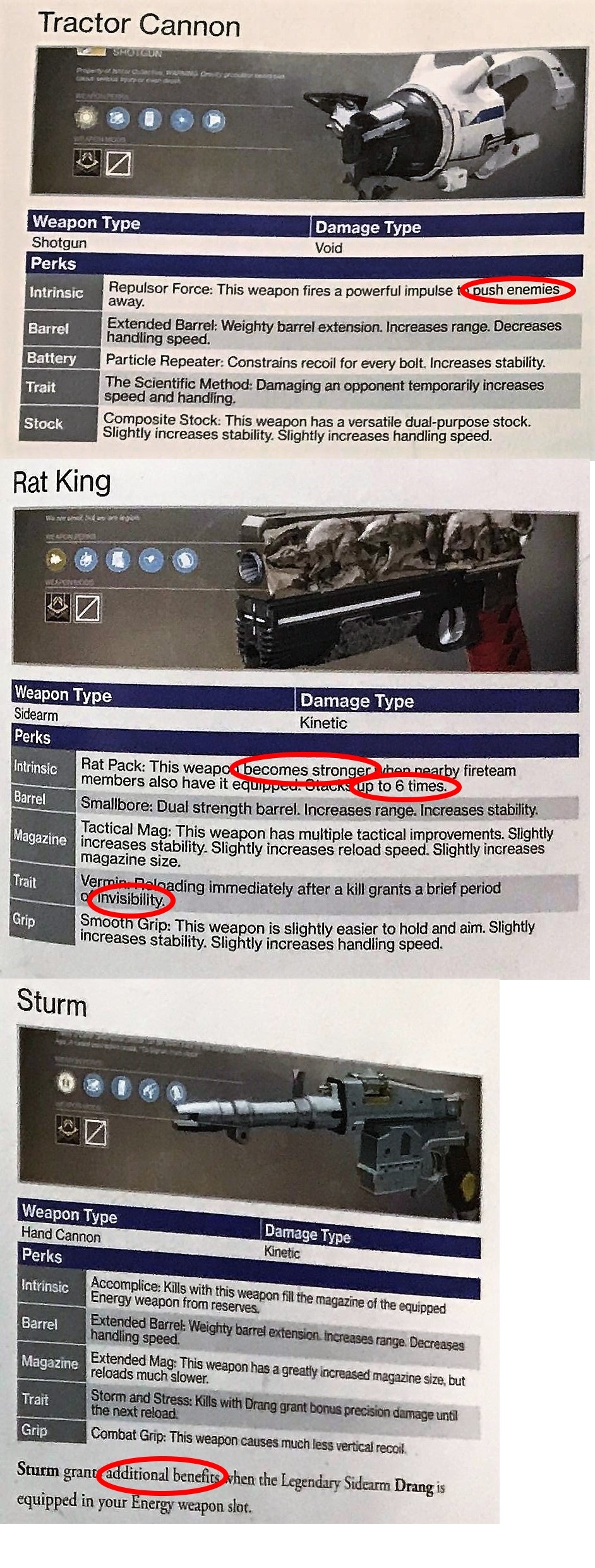 Der Leak basiert im Wesentlichen auf einem Sonderheft, welches von Gamestop ausgegeben wird, und schon vor dem Launch des Spiels abfotografiert wurde. Somit sind alle exotischen Gegenstände bekannt, für viele sogar schon die Perks.