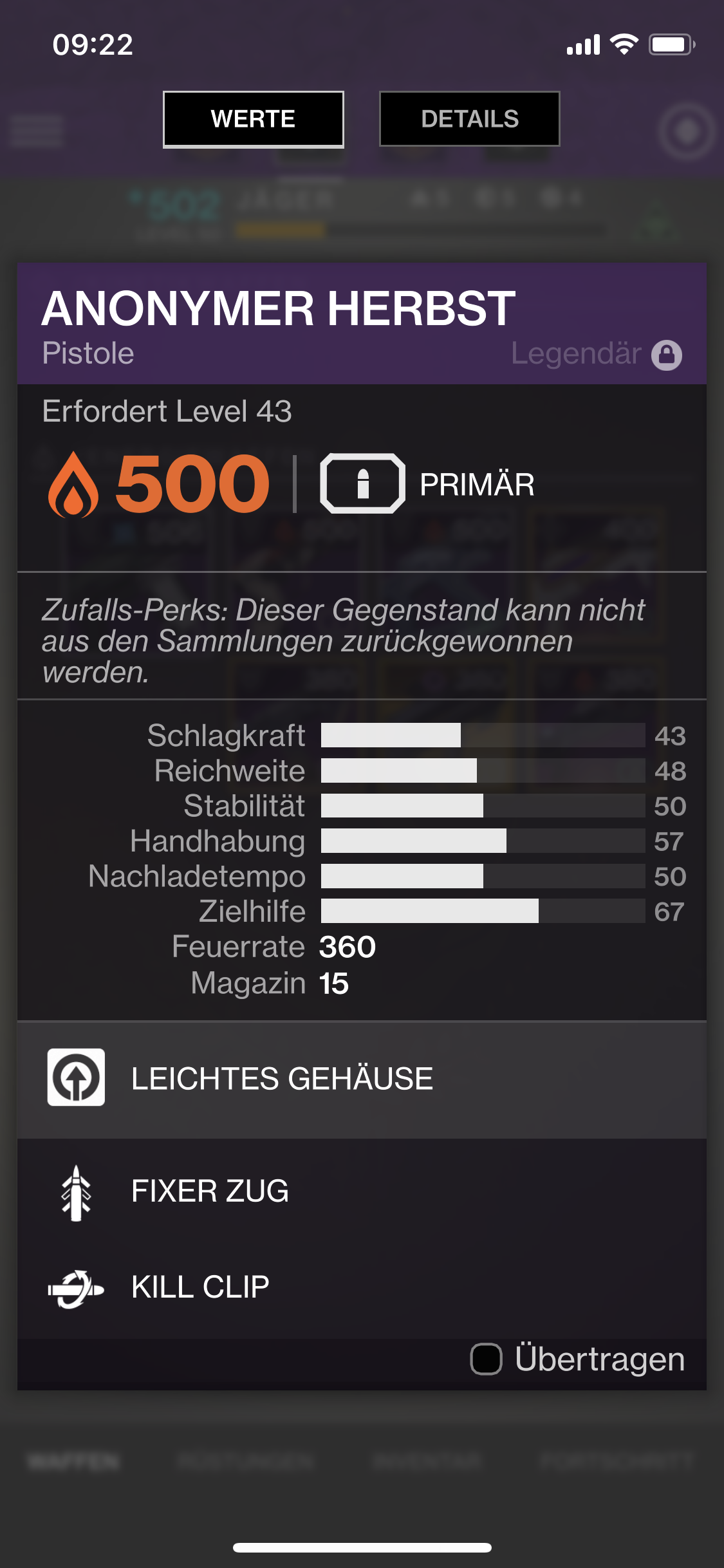 Ich hab mir, am WE bei Xur das Schwachkopfradar für den Jäger nochmals besorgt. Das hatte andere Perks als das ursprüngliche