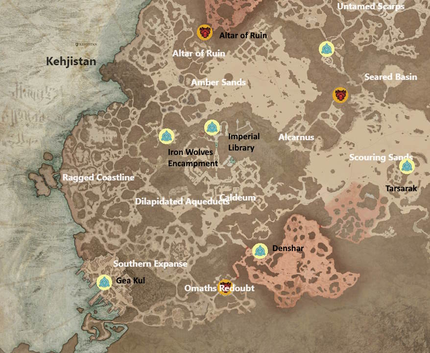- Altar of Ruin (Schließt die Festung ab, die ihr direkt östlich des Schriftzugs Kehjistan findet, um den Wegpunkt zu erhalten)