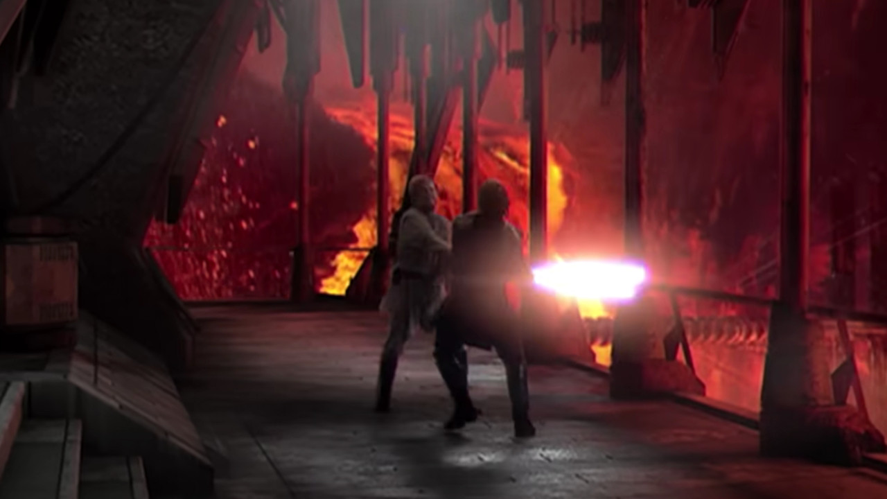 The duel between Anakin and his master Obi-Wan is one of the highlights of the prequels. However, there is a mistake in it: During the fight, the two Jedi move into a room with a large table. Here, Anakin forces Obi-Wan to his knees and almost manages to hit him with his own lightsaber.