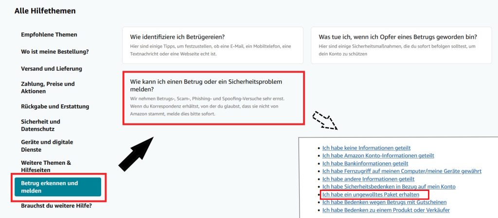 How to protect yourself: Report such packages immediately to the Amazon customer service. Scroll down a bit and look for “Recognizing and Reporting Fraud” and then go to “How can I report a fraud or security issue?” Then follow a list where you choose “I received an unwanted package”. At the same time, keep an eye on your personal data: Mystery packages can be an indicator that your personal information is already circulating. Therefore, regularly check your bank and credit card statements and strengthen your account security, for example by using strong passwords and two-factor authentication.