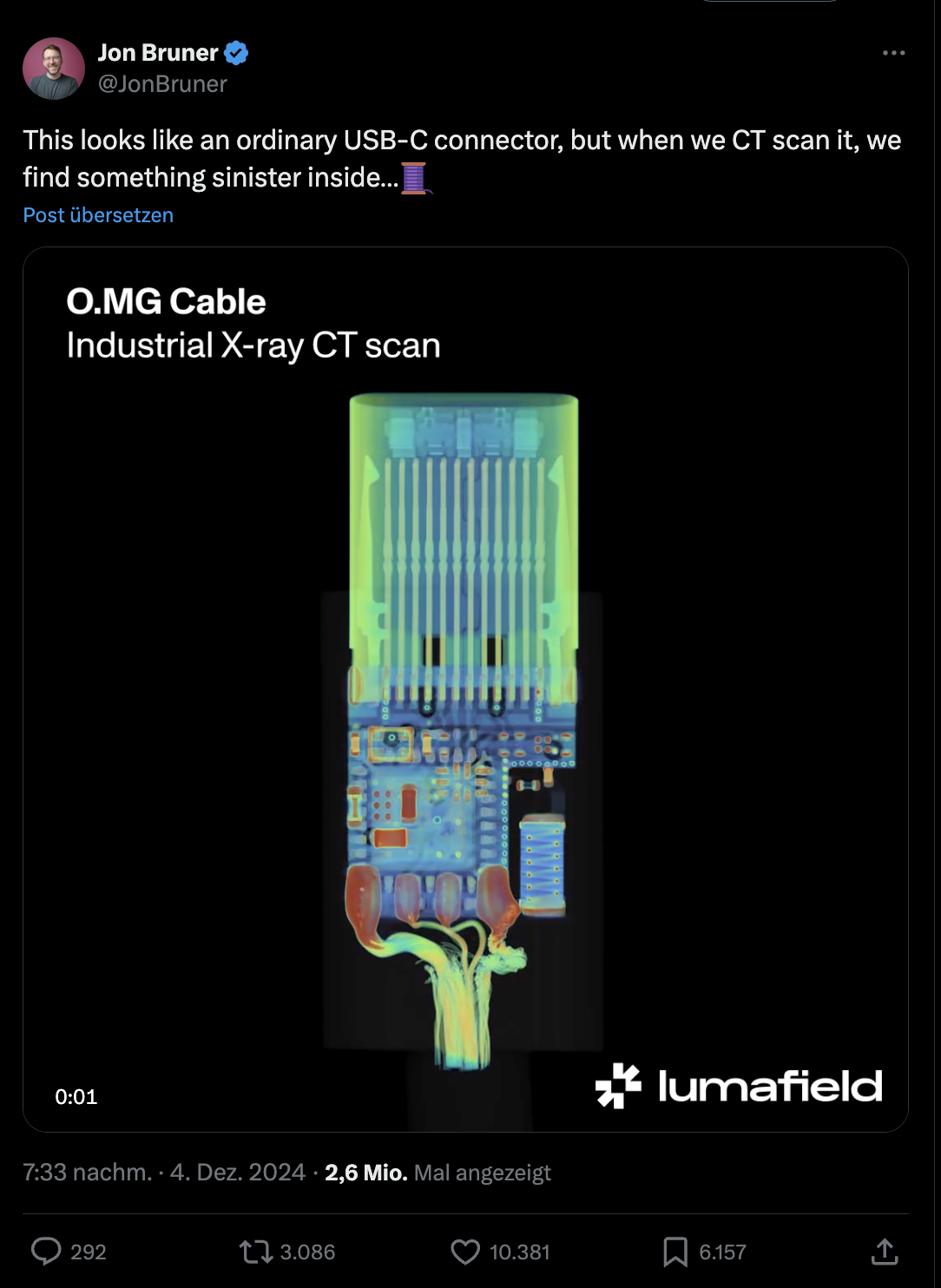 An investigation by Lumafield, which analyzed the internal structure of O.MG cables using CT scans, confirmed that the malicious hardware is extremely compact and not visible from the outside. This makes it a genuine “invisible threat”.