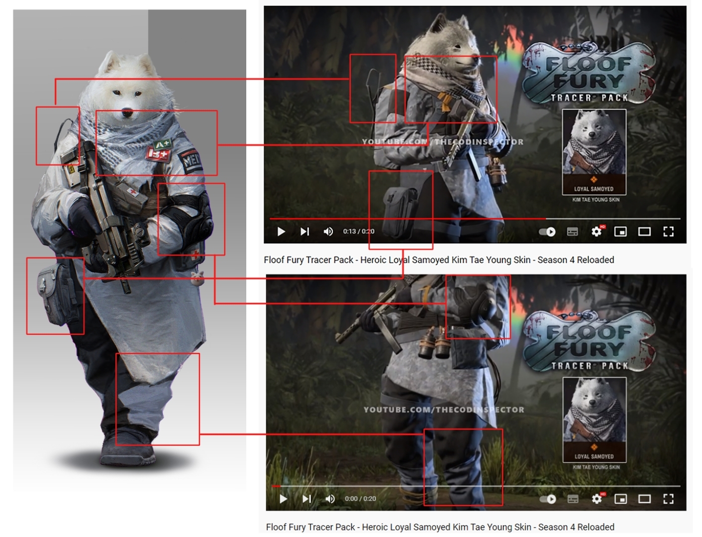 It is also noticeable the patch on the left arm of both skins. While Sail Lin’s Samoye image shows the medic’s insignia there, the patch on the CoD skin is simply black. It seems as if the insignia has simply been removed.