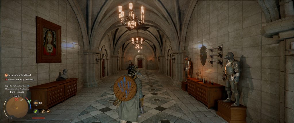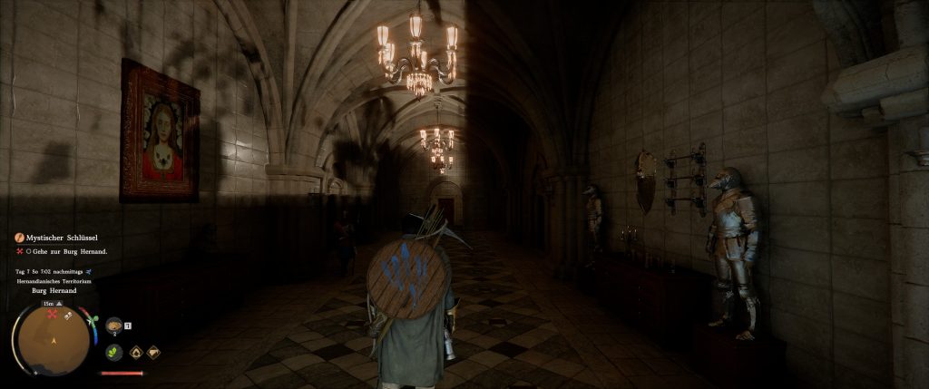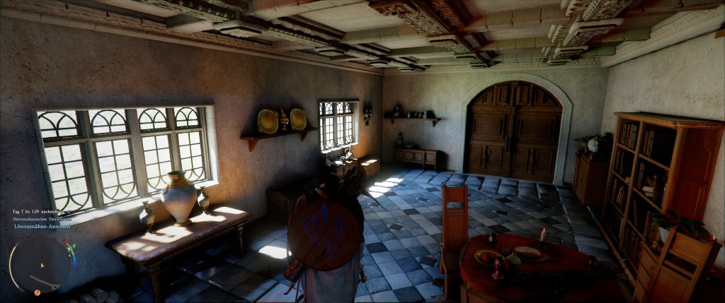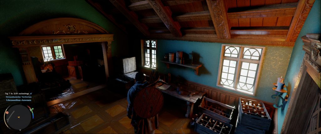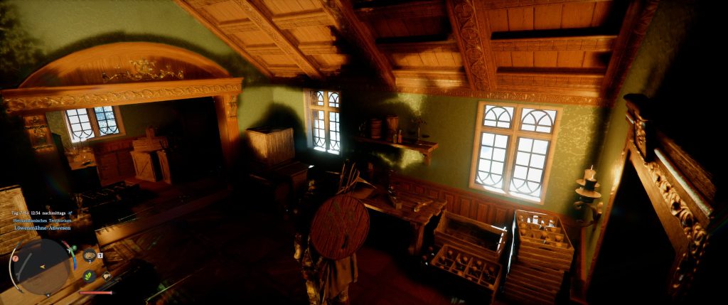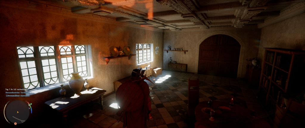 Where is this particularly noticeable? In interiors, because here the lighting is particularly well realized: Objects like armor or people cast precise shadows, and light is correctly refracted when it shines through windows. Furniture appears much more three-dimensional due to the detailed shadow casting. Metal looks like metal and no longer like a painted block of wood.
