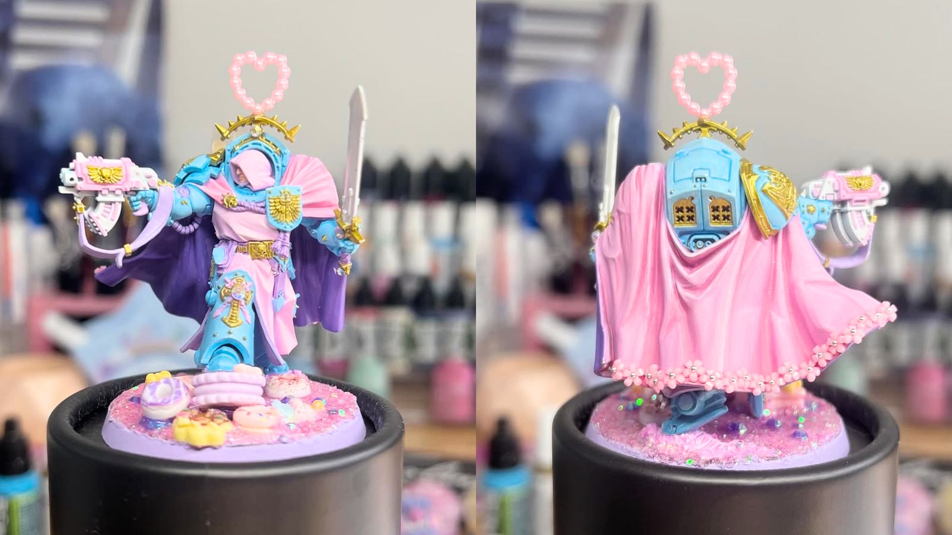 Bubblegum Angels: My style is primarily inspired by Japanese creator Minamo Mizu. She customises Gunpla models in her own unique kawaii style. I saw her work many years ago at the Gundam Base in Japan and immediately fell in love. I knew one day I wanted to create something like that, and when I discovered Warhammer it felt like what I’d been waiting for.
