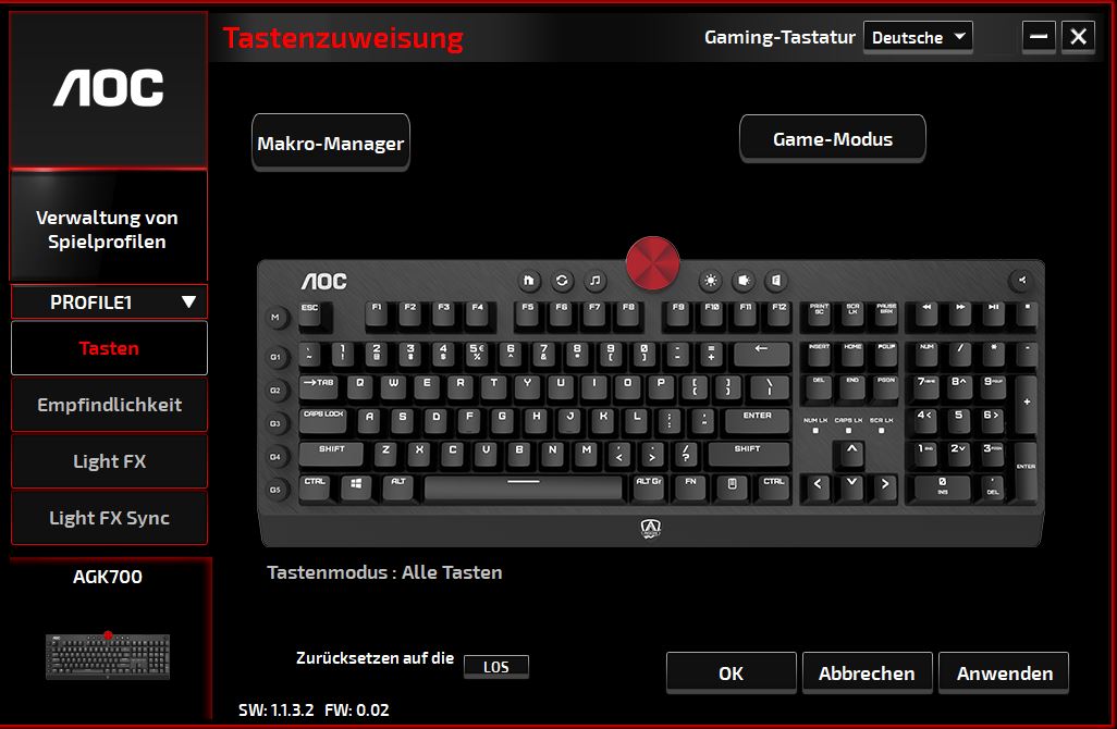 Who is this gaming keyboard suitable for? With the AGON series, manufacturer AOC targets professional gamers. For 180 euros, you definitely get an extremely high-quality gaming keyboard with a sturdy casing, comfortable wrist rest, and intuitive software. The additional special and macro keys, along with the extra USB port, round off the positive overall picture.