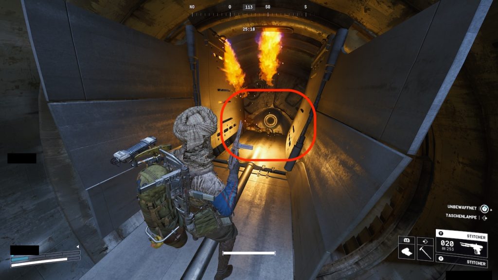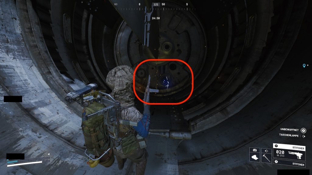 After that, the electricity changes its location to the middle part of the turbine, but be careful – the device now temporarily spits out flames. Make sure you can approach the second cable area at the right moment without getting burned.