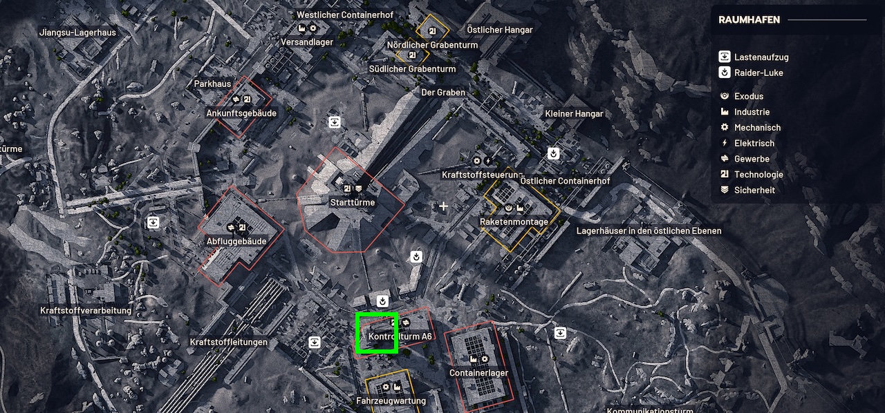 Visit the building “Control Tower A6” and set your eyes on the tower. The building has several entrances, but you only want to use the one under the tower because it leads you directly to the locked door and contains no ARCs.
