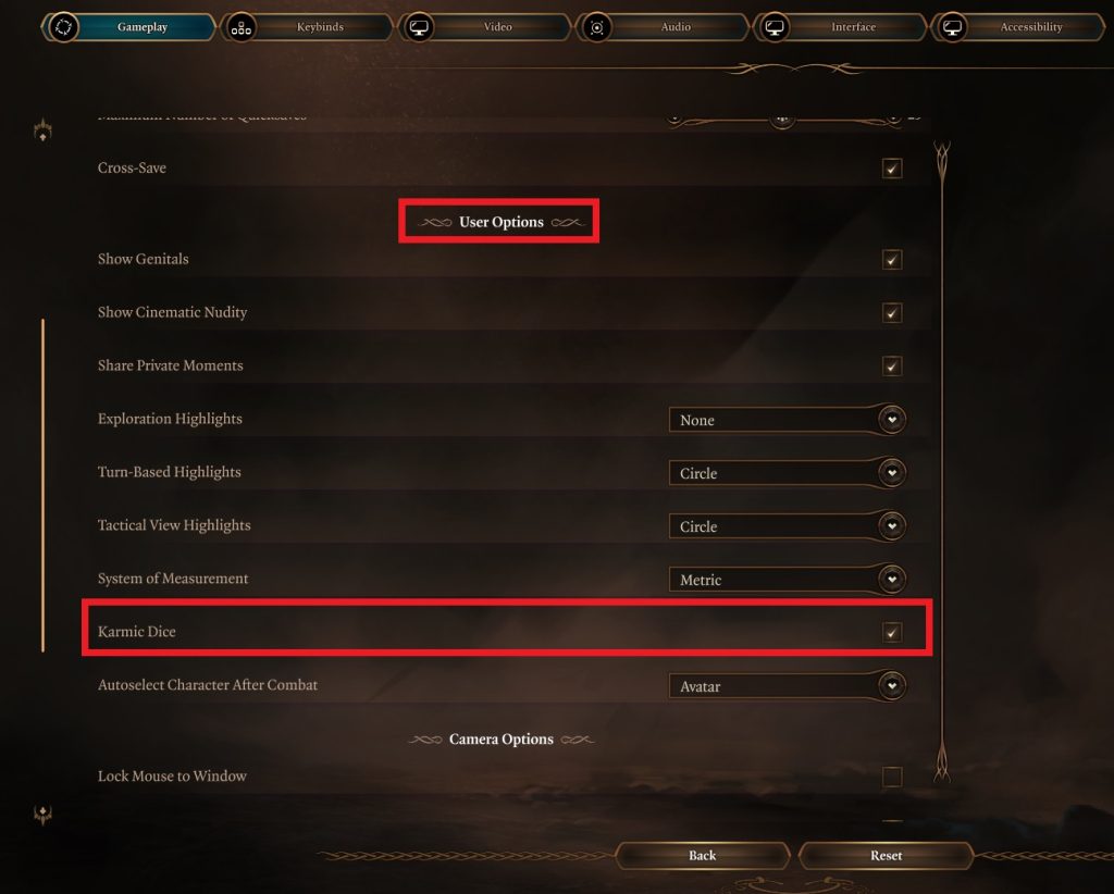 Baldur’s Gate 3 is fundamentally a role-playing game that is heavily based on the Pen&Paper Dungeons & Dragons. As such, rolling dice is particularly important. Success in combat, a precise observation of the surroundings, or seducing the conversation partner are determined by a die roll, combined with the character stats. Because dice can be declared as “completely random”, there is an option in the game that is supposed to balance out too much luck or too much misfortune: Karmic Dice.