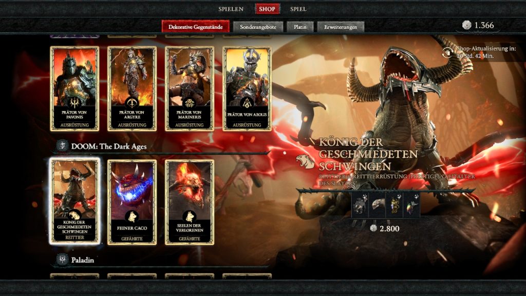 - At the release of the Paladin, there were sets for around 25 euros (2,800 platinum), which usually consisted of one armor, two weapon skins, and one paint job. Here, fans even said: The free stuff for the Paladin is actually much cooler.