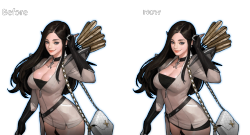 Slightly smaller breasts than in the original - this is discussed at Hyper Universe.