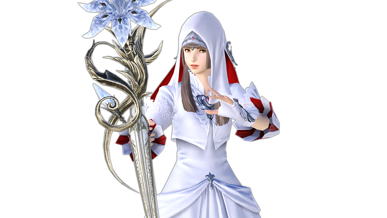 This is the White Mage: White Mages are classic healers, as they are written in the book. With their large arsenal of healing and shielding abilities, they are optimally equipped to keep their teammates alive while also dealing some damage.