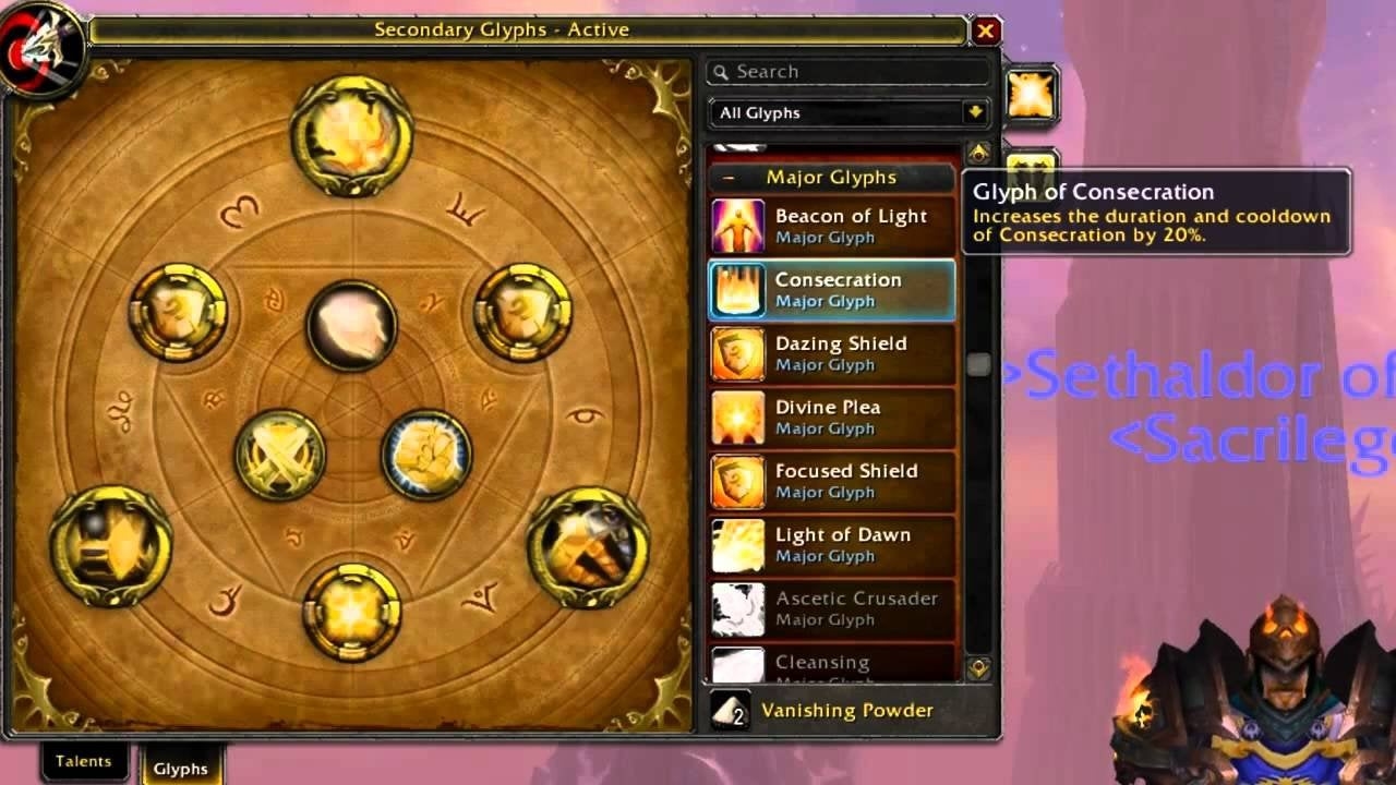 Later, however, the system was trimmed down so much that glyphs only had an optical effect, until many of them eventually disappeared. At that time, one reason given was that Blizzard did not want to confuse players when a spell suddenly looked different than expected. This was presumably especially true for PvP.