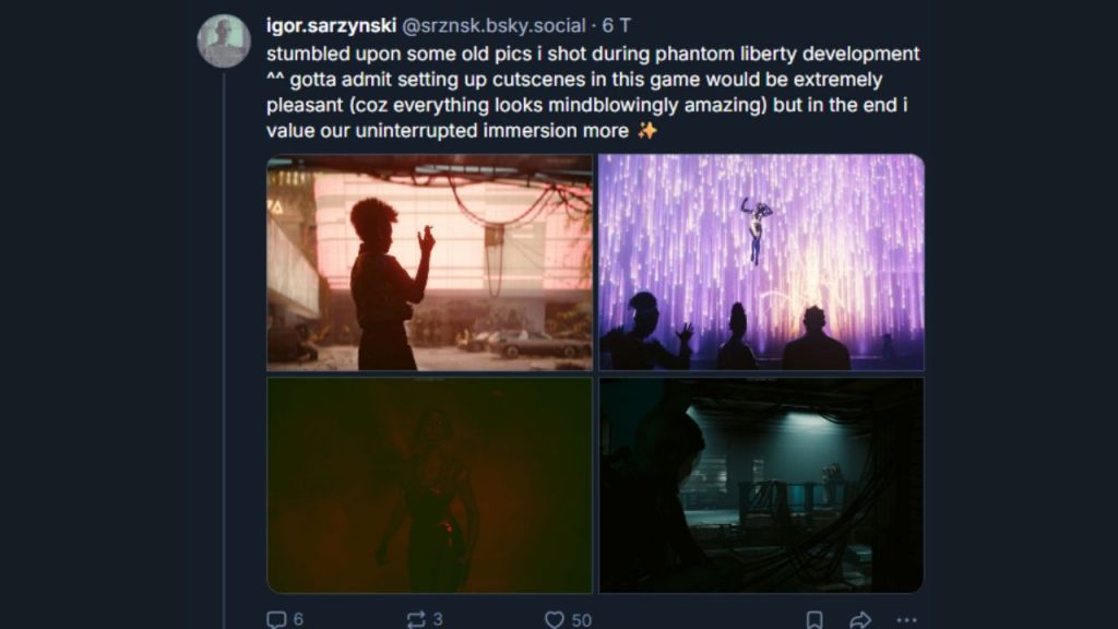 What did the Creative Director explain? Creative Director Igor Sarzynski presented with a post on Bluesky a few older screenshots that the lead took during his playtime in Phantom Liberty. In the DLC, he was himself the Narrative Director and consequently responsible for the vision and processing of the story.