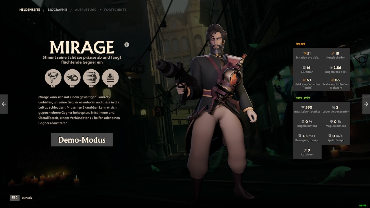 - Tornado: Mirage transforms into a tornado that deals damage and holds enemies in the whirlpool. Enemies in the whirlpool are immobilized. If Mirage leaves the tornado, you get the chance to evade bullets.