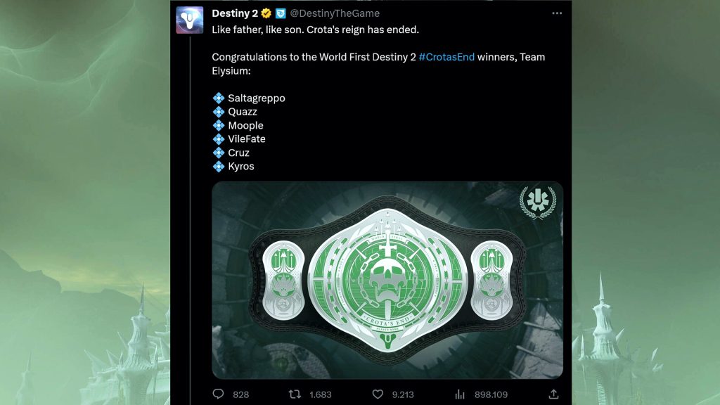 Here are the winners: Saltagreppo and the Elysium clan secured their fourth World’s First belt with the victory over Crota. Thus, they belong to one of the best clans in the entire history of Destiny 2, having won on Day One of the “Vault of Glass”, “The Oryx’s vow”, “King’s Fall”, and now also in “Crota’s End”.
