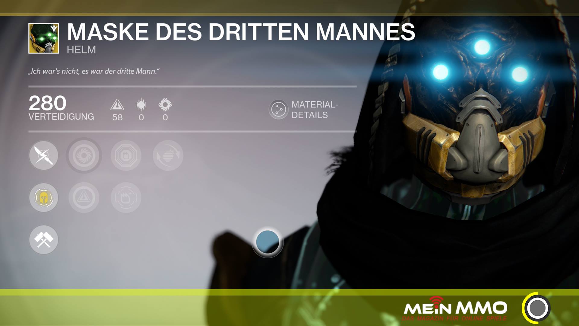 Hunters can get the helmet Mask of the Third Man on offer. 58 Intelligence.