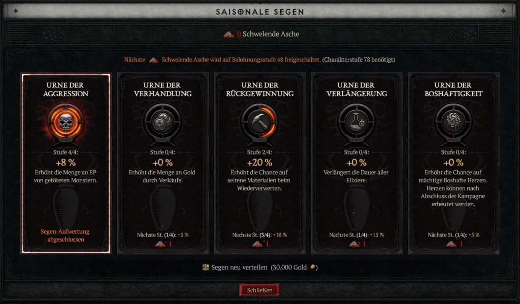 - The overall XP bonus for the seasonal blessing of the “Urn of Aggression” has been increased from 8% to 20%.