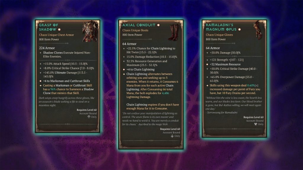 In the livestream, game designer Charles Dunn explained that currently no changes have been made to the Mythic Uniques. In future seasons, they plan to adjust them, but the focus is now on the Chaos Uniques. His statement: “In some cases, Chaos Armor items are even better than Mythics – depending on the slot and build.”