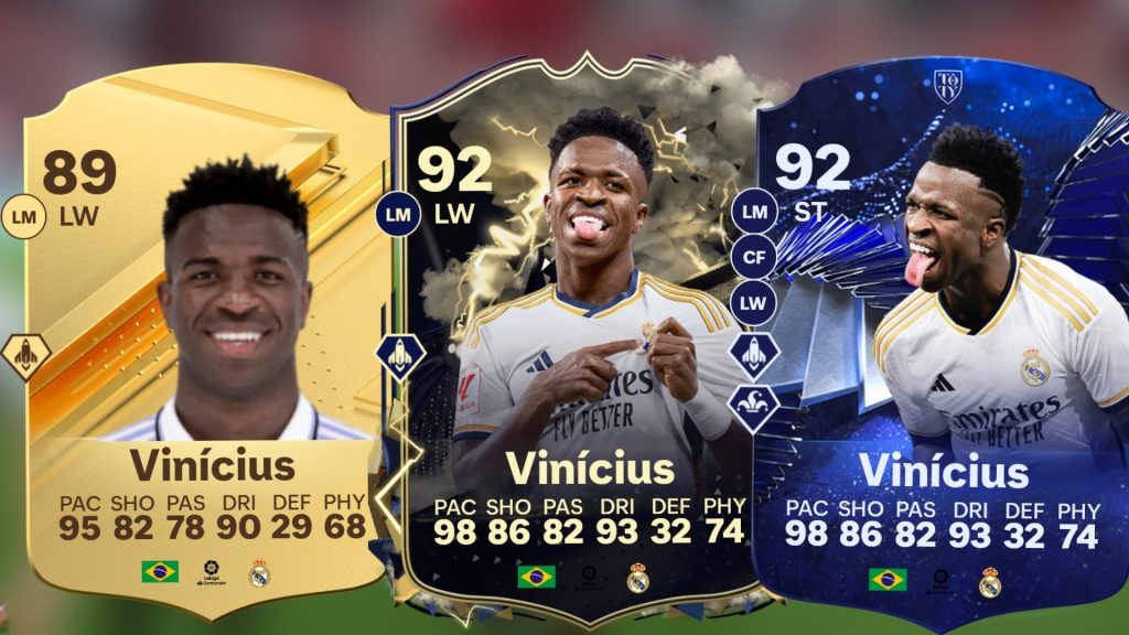How good is Vini Jr. in EA FC 24: In EA FC 24, the gold card started with a market value of over a million coins. Although its price has fallen considerably, its gold card still marks the second place (about 300,000 coins) of the most expensive gold cards in the game after Mbappé due to its still strong pace and dribbling stats. This is also due to his playstyles that make him even faster. In contrast to our first-placed players, Vini Jr. has only received a mini-TOTY and a Thunderstruck card. These versions are significantly priced lower than his competitors, which should not distract from the fact that the cards can be real game-changers in the game.
