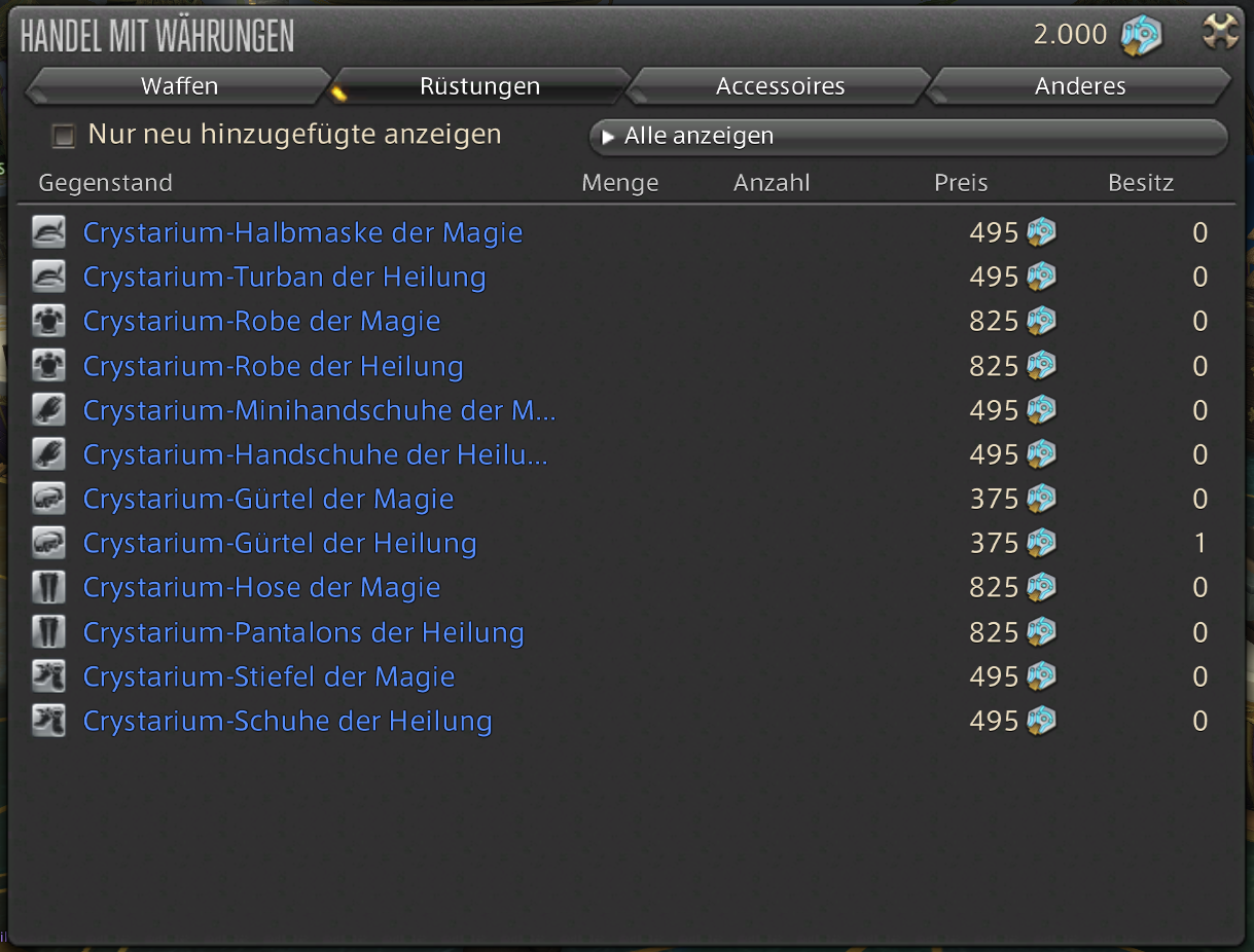 With weapons, it’s somewhat different. You also need Allagan Stones for that, but they cannot be directly purchased from Aymark. You need the following items: