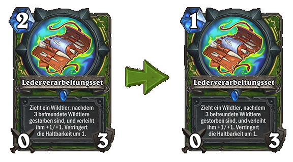 The Leatherworking set, a weapon for Hunters, will have its costs halved. They will decrease from 2 mana to 1 mana.