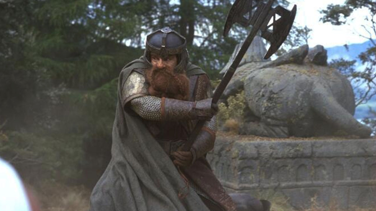 Gimli is the somewhat stubborn but good-natured dwarf in the Fellowship of the Ring. He is the son of Glóin from the lineage of Durin and belonged to the royal house of the dwarves of Erebor.
