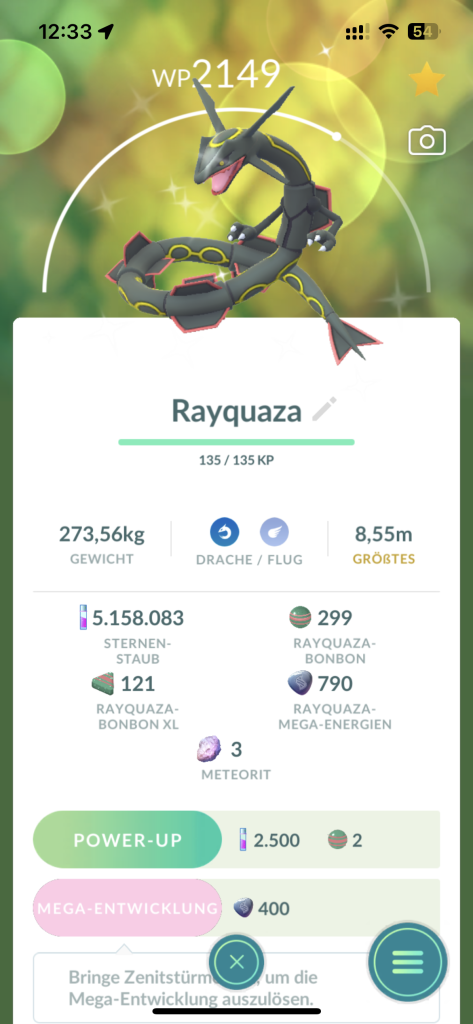 How satisfied am I with that? I am very satisfied with my haul, especially since I played most of the time from my desk. I am especially pleased about my shiny Rayquaza, which was probably the highlight of the event for me. But my cute mini-Schlurp and the shiny Schalellos are also among my favorites of the event.