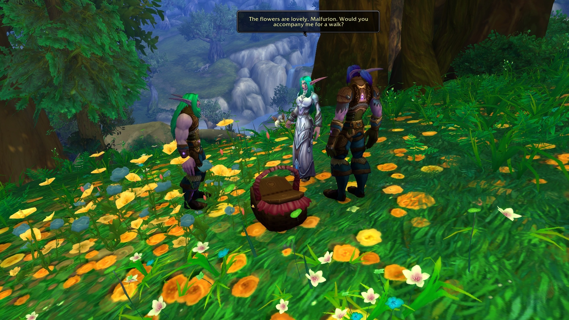 Throughout the quest, you must collect Tyrande’s favorite flowers and encourage Malfurion to approach the two and expose Illidan’s deception.
