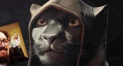 The joke was well executed. The folks at Bethesda spared no effort and dressed a cat in a few funny outfits.