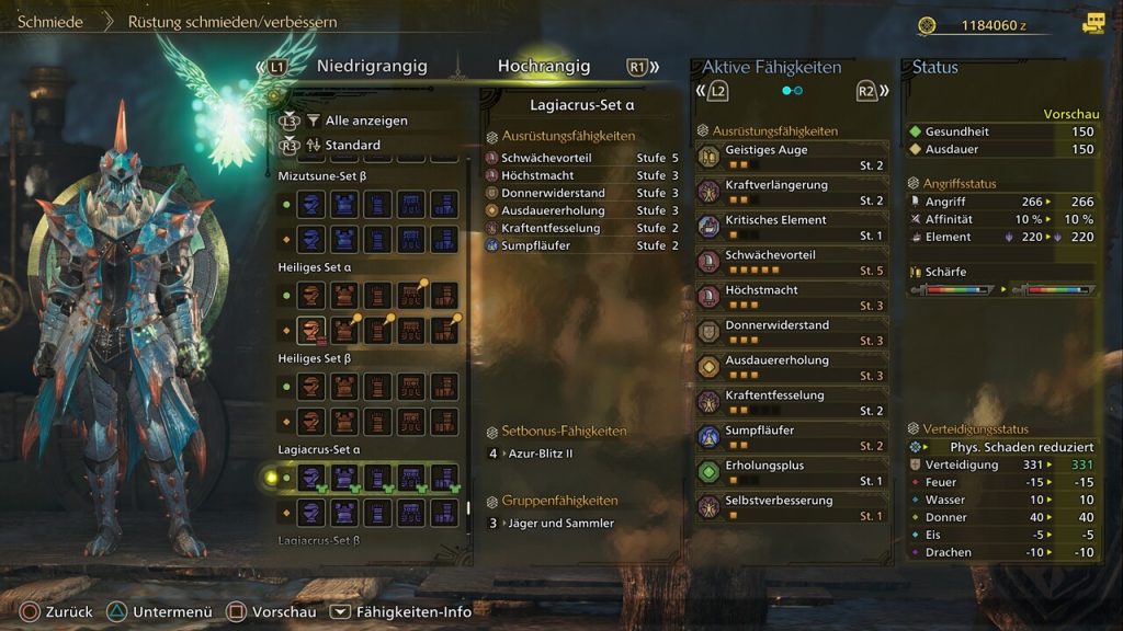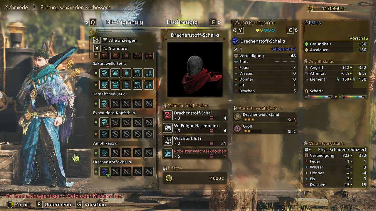 | Duna Armor | Uth-Duna Scale+ x 6 / Uth-Duna Hide+ x 6 / Uth-Duna Zilien x 3 / Sturzflut Pouch x 3 |