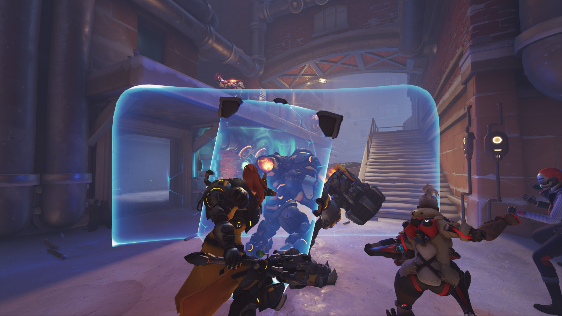 - We see Mei jumping into Reinhardt’s arms and creating an ice ramp with her weapon that both can escape on with Reinhardt’s “Charge”.
