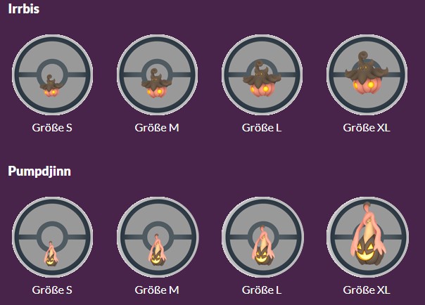 With some luck, you might also encounter Alpollo, Makabaja*, Lichtel, Irrbis in sizes L or XL. Pokémon marked with a star* can also be found as Shiny.