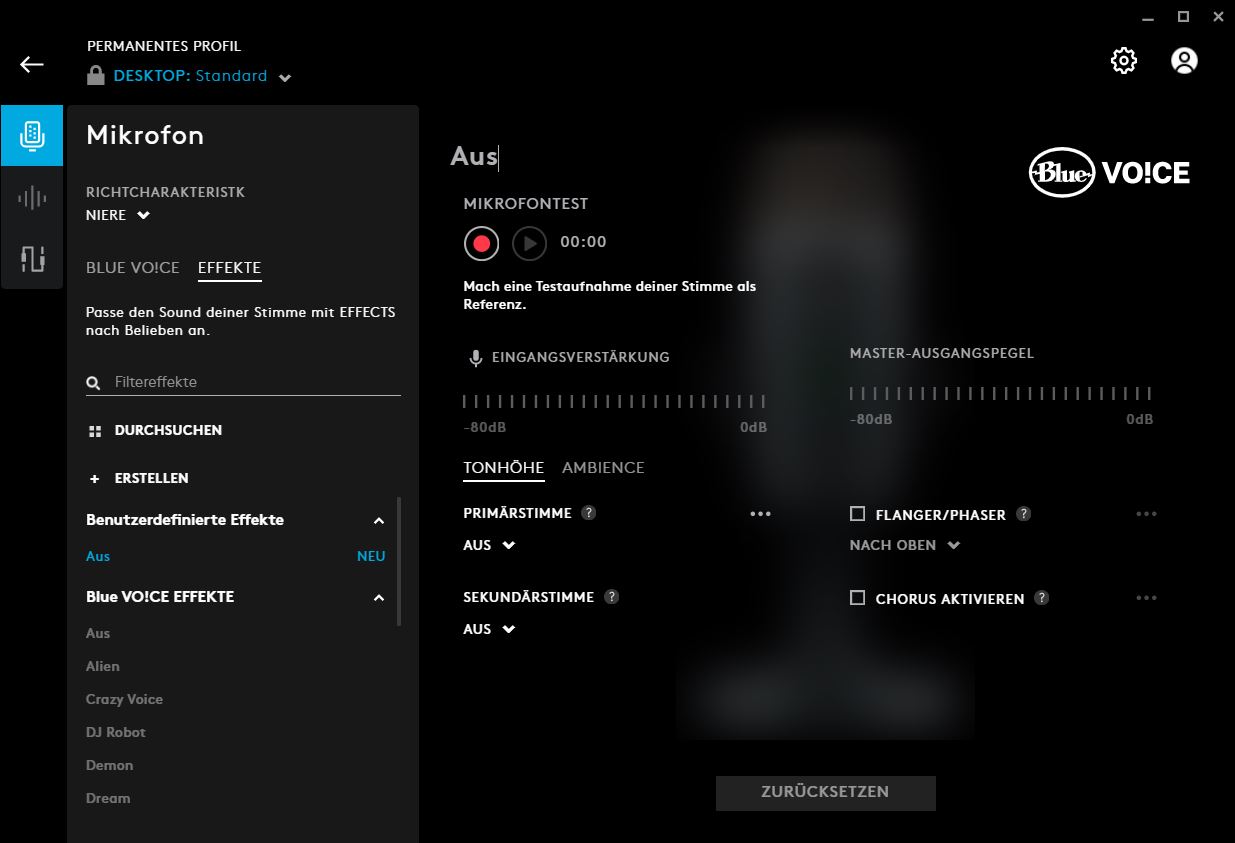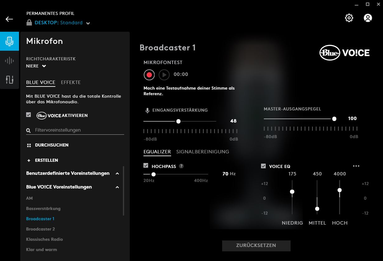 In another aspect, we can additionally adjust the microphone signal and set noise suppression or determine under which threshold the device should not pick up sounds. This is useful, for example, if you don’t want your listeners to hear the typing of your keyboard.