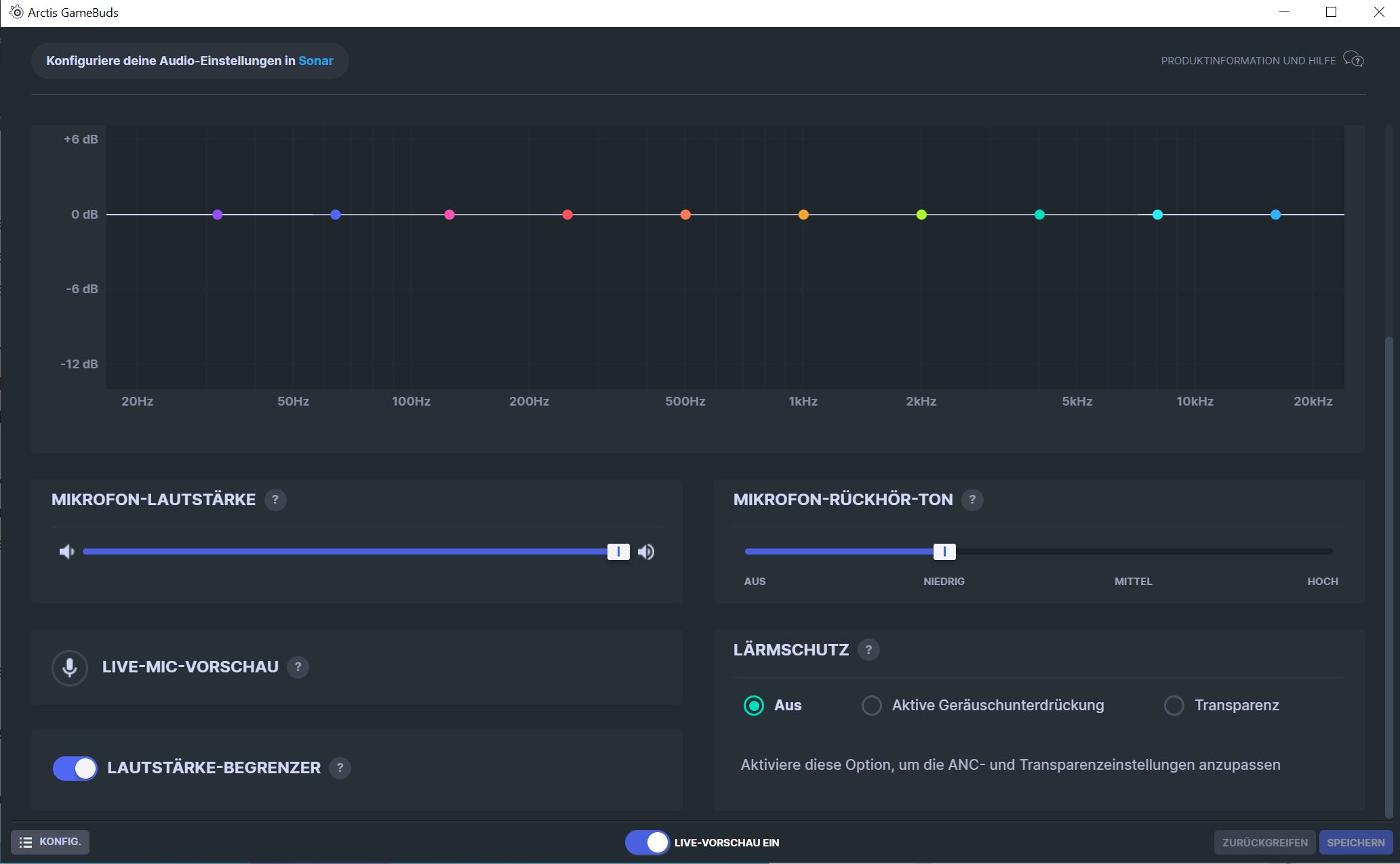 SteelSeries GG is overall overloaded with additional features: In-house advertising, so-called “Gift Guides,” news about its products, and giveaways are all offered within the software. The actual software to configure the in-ears can only be found in a second tab. If you manage to get this far, the rest is organized.