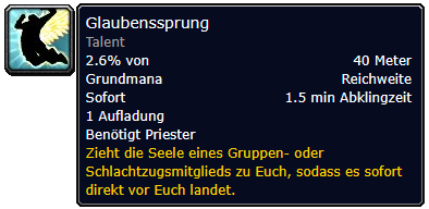 Hardly any spell has caused as much joy and as much suffering as Leap of Faith. The ability allows the priest to select a friendly target in the group and pull them to their own position – whether the victim wants it or not.